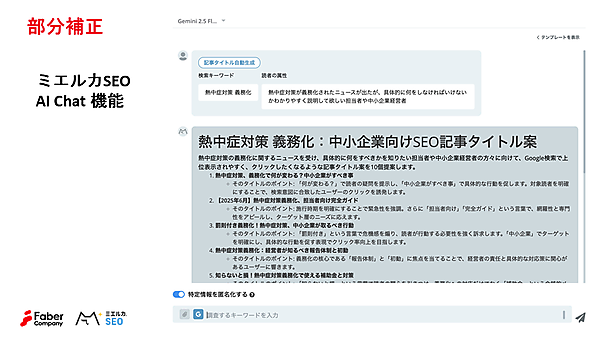 検索において上位表示させるには、キーワードだけでなく内容的な網羅性も必須だ。AI機能で網羅性を担保することでSEO的にも効果的なコンテンツを作成することができる。
