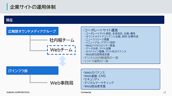 佐藤氏は2020年、コーポレートサイトの運用担当者としてSUBARUに中途入社。「この規模の会社だと、専任担当者が5人ぐらいはいるだろうと思っていた」と明かす。だが、入社すると専任担当者は佐藤氏ただ一人。