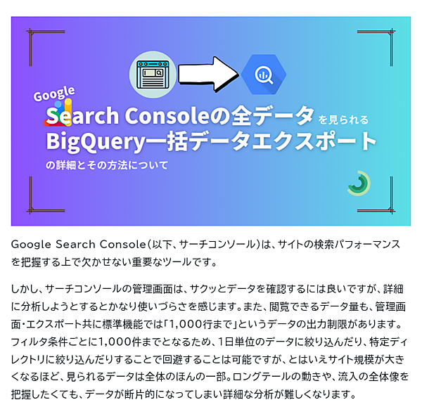 注意点はあるものの、大規模サイトのSearch Console分析には非常に有用な手法だ。詳細な設定手順は元記事を参照してほしい。