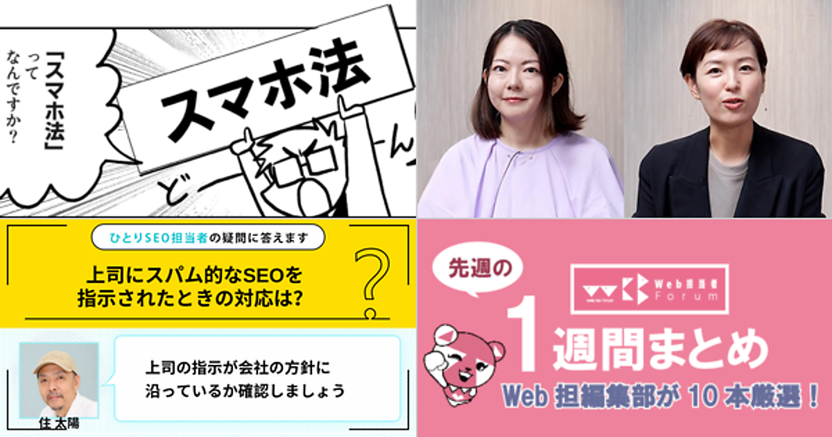 Web 担当者 Forum に掲載された情報を毎週一度、まとめてご紹介するこのコーナー、今回は解説記事 5 本とニュース記事 5 本です。