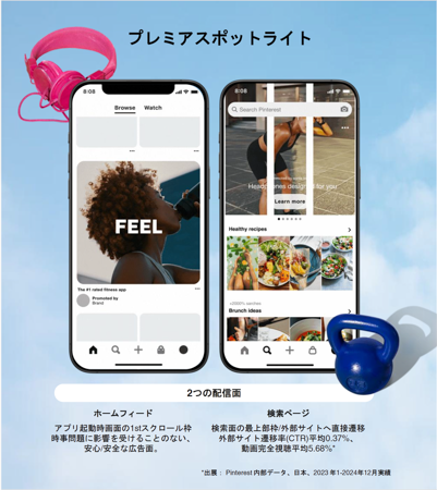 そうしたピンタレストの特徴を踏まえ、花王は予約型広告の「プレミアスポットライト」と運用型広告を活用することにした。予約型広告は一日一社限定で提供される商品でホームフィードと検索ページ画面において、モバイルデバイスの約50%の画面に表示される広告で、目立つ場所を独占して配信をすることで、認知拡大につなげやすい。