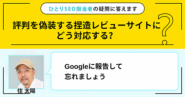 ひとりで頑張るSEO担当者さんの悩みに答える本連載。今回の質問は「評判を偽装する捏造レビューサイトにどう対応する?」です。