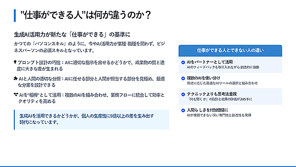- AI活用が必須スキルに。AIを“相棒”として、人間の創造性を拡張する