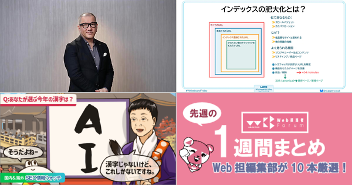 Web 担当者 Forum に掲載された情報を毎週一度、まとめてご紹介するこのコーナー、今回は解説記事 5 本とニュース記事 5 本です。