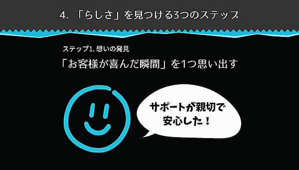ステップ1. 想いの発見:「お客様が喜んだ瞬間」を1つ思い出す