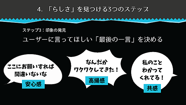 ステップ3. 印象の発見:ユーザーにいってほしい「最後の一言」を決める