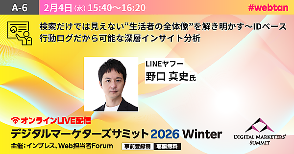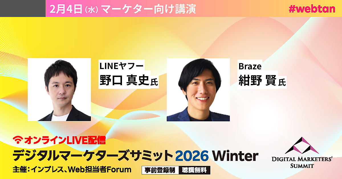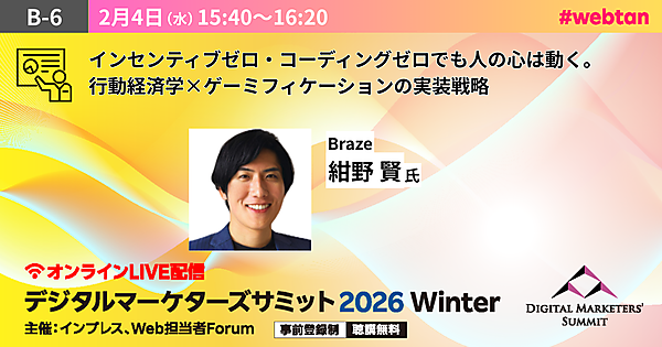 DMM.com、花王、パナソニックコネクト、三菱電機などが登壇する「デジタルマーケターズサミット 2026 Winter」を2月4日(水)にオンラインで開催します。