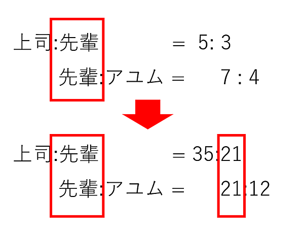 先輩:アユム=7:4→先輩を7から21にするには?