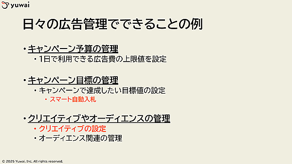 - クリエイティブやオーディエンスの管理
