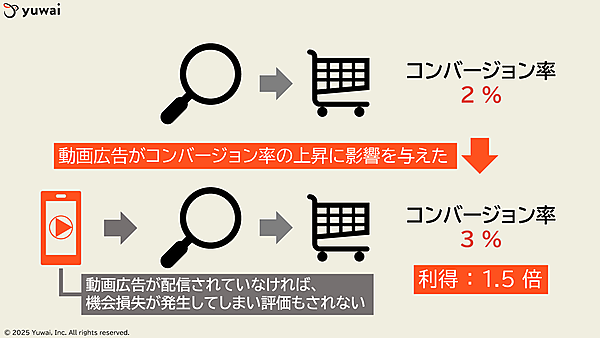 P-MAXは後者の経路を「動画広告があったことでコンバージョン率が1.5倍になった」と評価し、動画への投資を強める。逆に、成果につながらない経路は入札を抑制し、場合によっては広告自体を出さないという判断も下す。