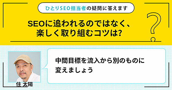 ひとりで頑張るSEO担当者さんの悩みに答える本連載。今回の質問は「SEOに追われるのではなく、楽しく取り組むコツは?」です。