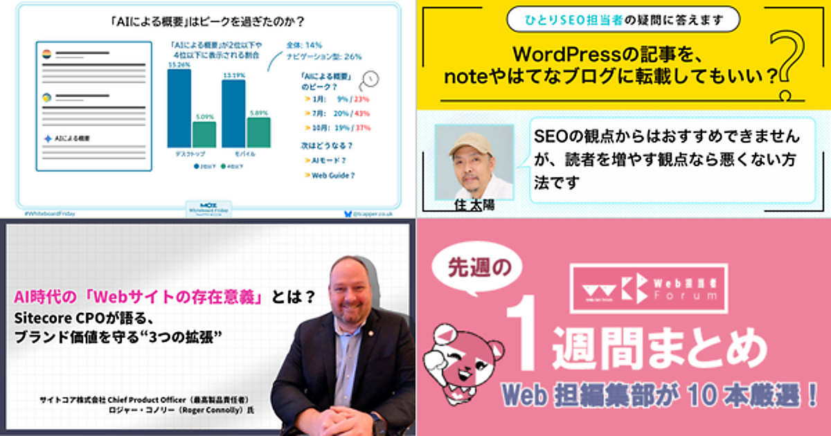 Web 担当者 Forum に掲載された情報を毎週一度、まとめてご紹介するこのコーナー、今回は解説記事 5 本とニュース記事 5 本です。