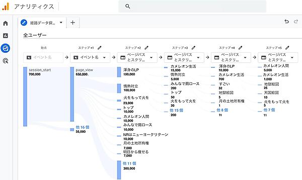 下の画面は、GA4の「経路データ探索」ページです。