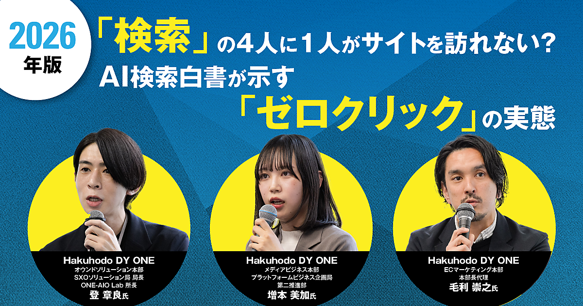 2026年2月12日、Hakuhodo DY ONE主催の「AI検索カンファレンス2026 生成AI時代の検索マーケティング最前線」と題したイベントが開催された。AI検索の最前線を知る同社のメンバーが、生成AI時代のSEO・AIO・検索連動型広告を総括し、業界最先端の知見と実践事例を体系的に紹介した。
