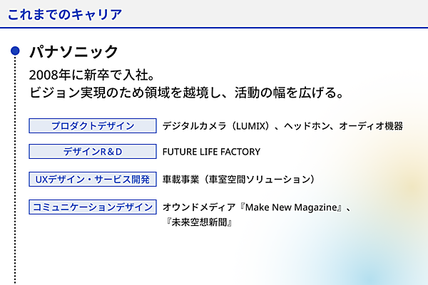 デザインR&D組織のFLFから車載事業のUX開発を経て、姜氏は2022年のパナソニックのホールディングス化のタイミングで、事業会社のブランド部門へと異動する。そこで任されたのは、パナソニックがどんな未来に向かっているかを、ファクトを基に発信するオウンドメディア『Make New Magazine』※の企画・運営と、年に一度発行している『未来空想新聞』だ。