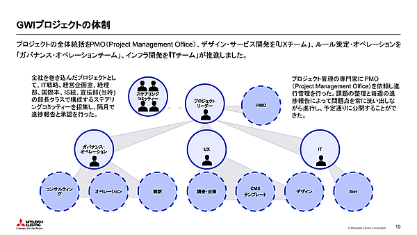 一部門が勝手にやっている小さなプロジェクトではないことを世界中の各組織に訴えるための体制が必要でした。さらに外部のコンサル会社にお願いしてPMO(Project Management Office)を結成し、毎週ここで進捗を報告しました(粕谷氏)