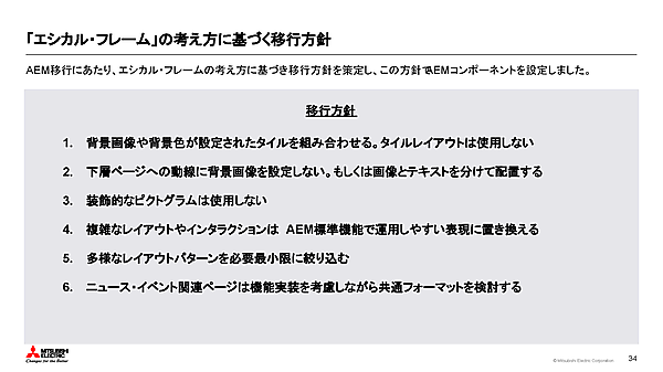 AEM移行にあたって、具体的な方針として次の6つを策定した。
