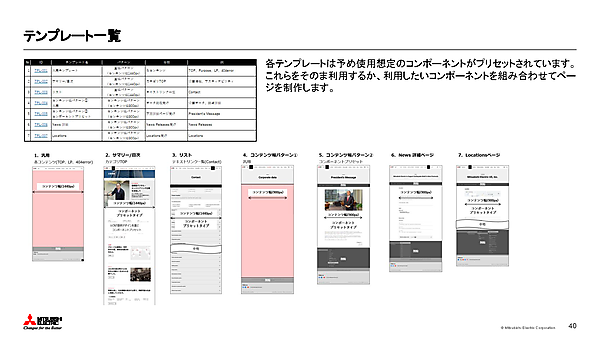 テンプレートを増やさなくても、コンポーネントの組み合わせ方次第でしっかりページは作れるため、三菱電機ではテンプレートの種類を絞りに絞り込んだ。