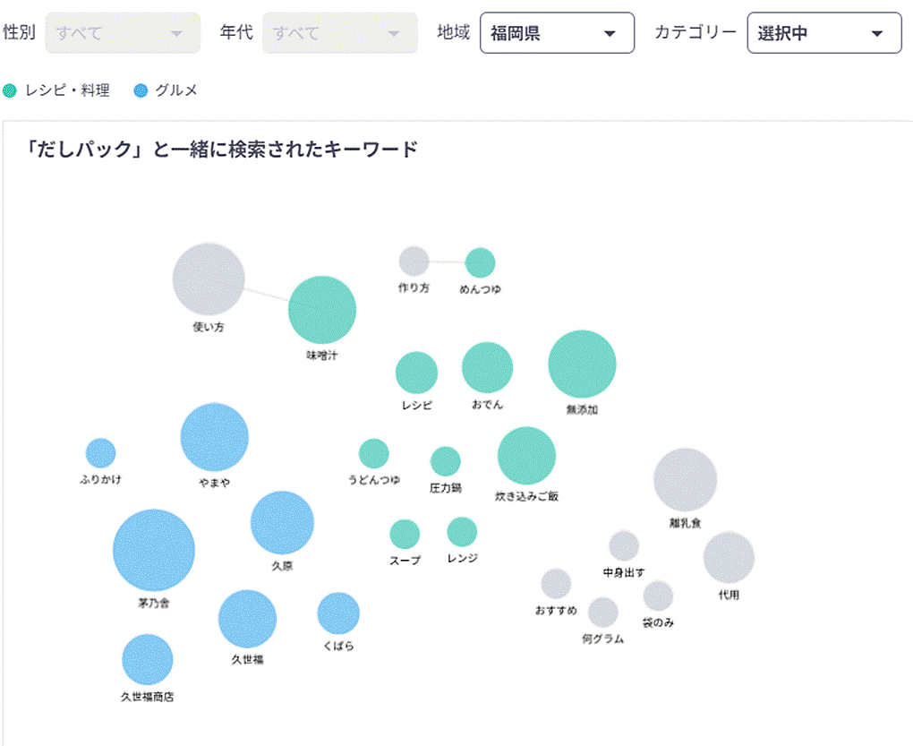 上田 また、最近では、注力商品のだしパック「うまだし」の首都圏での認知獲得プロジェクトにおいて、首都圏での検索状況や競合調査をDS.INSIGHTで行い、購買ニーズのポテンシャルを分析しました。