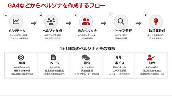 - 統合ペルソナ:集客・ページ・調査・ボイスを統合して作成