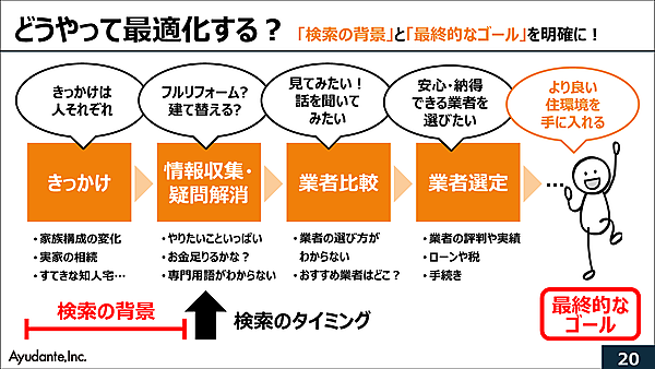 「フルリフォーム」というテーマを例に、検索ジャーニーの最適化を考えてみる。