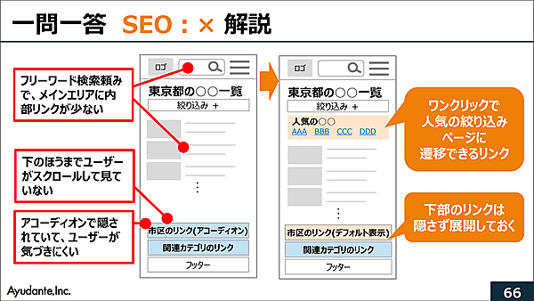 続いて高橋氏は、一問一答形式で、ページ画面設計に関するよくある疑問に回答していった。