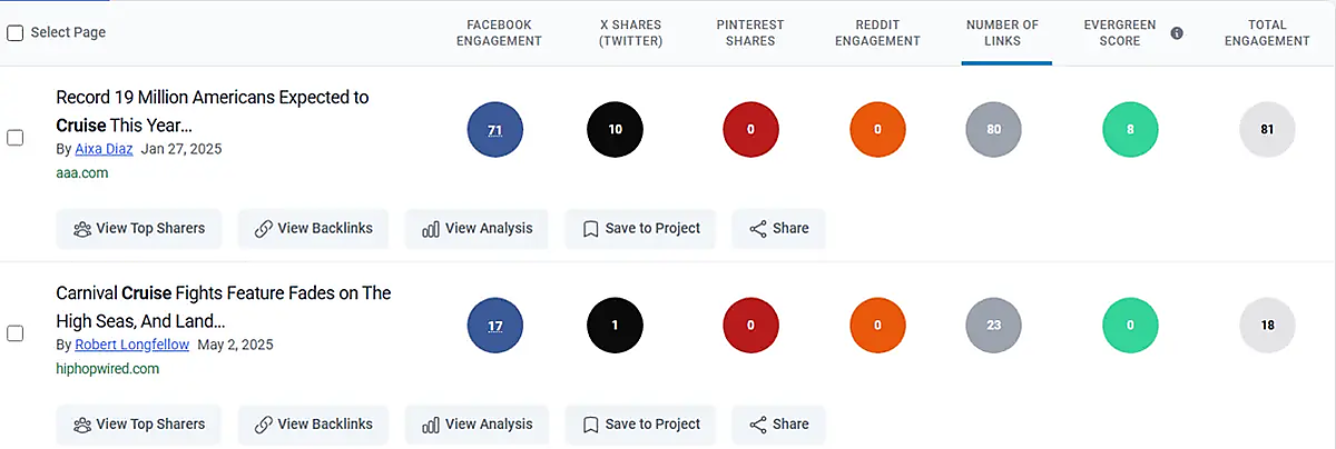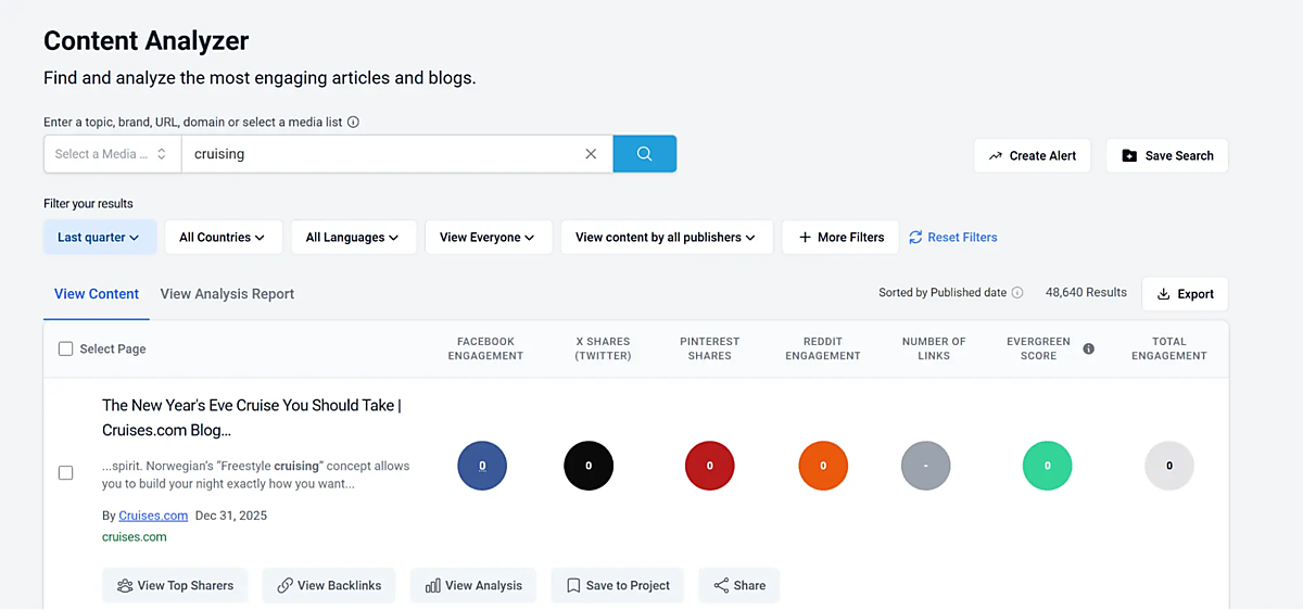 たとえば、Reddit上のクルーズに関するコンテンツを見ると、BuzzSumoではリスト形式の記事が最もパフォーマンスが高く、僅差でインタビュー形式が続くことがわかった。したがって、戦略にRedditを組み込んでいる人は、そういった形式に重点を置くべきだ。