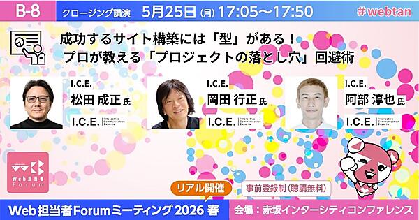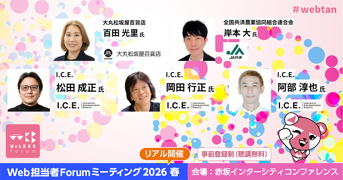 富士通、JA共済、アドビ、日本マイクロソフトなどが登壇する「Web担当者Forumミーティング 2026 春」を5月25日(月)に赤坂インターシティコンファレンスにて開催します。