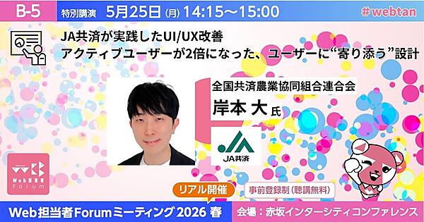 利用データやユーザーの声をもとにアプリの役割を再定義し、UI/UXを磨き上げたJA共済の舞台裏を公開。Webサイト制作にも応用できる、課題の見立て方や改善手法の基本を学びましょう。