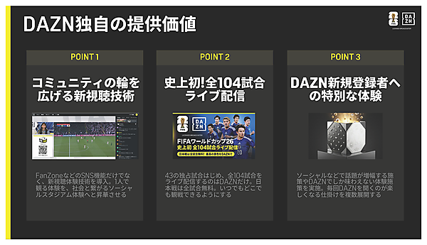 また、大勢で観戦できる大規模なイベントも計画しているという。DAZNは、スポーツエンターテインメントを進化させる構えだ。