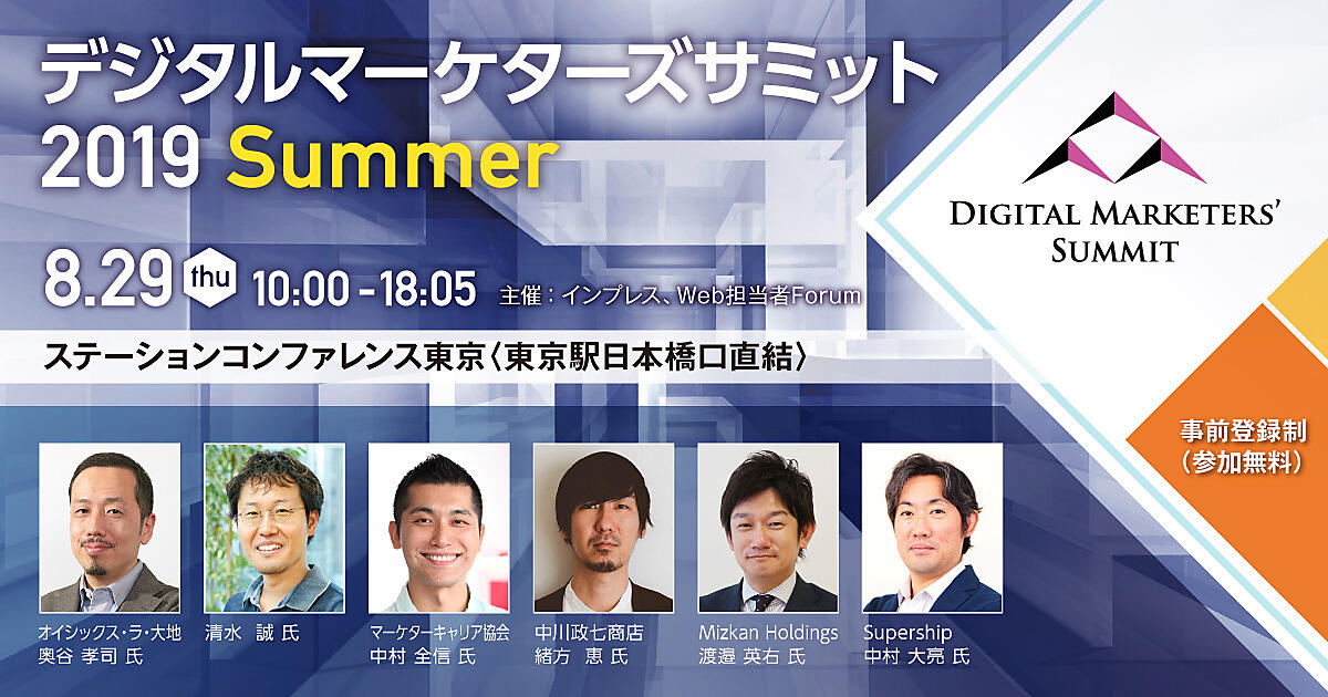 | イベント名 | デジタルマーケターズサミット 2019 Summer |