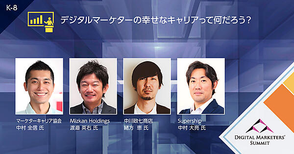| 17:05 | K-8 クロージングパネルディスカッションK会場 デジタルマーケターの幸せなキャリアって何だろう? ![]()