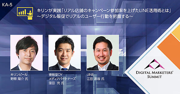 BtoBtoCという流通経路を経る業種の最大の課題は、リアル店舗のユーザー行動が把握できないことだ。そこでキリンはLINEを使って、デジタルキャンペーンを実施し、見事キャンペーンの参加率を伸ばすことに成功したという。また、自動販売機にLINE Beaconを連動させることで、ユーザー行動の把握につながった事例も紹介する。