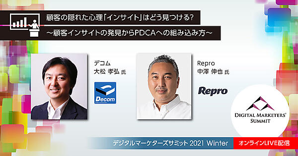 講演概要 マーケティングの出発点とはすなわち顧客理解です。デジタル技術の進化で、さまざまデータが取得でき、データ分析やPDCAによって、顧客理解をした気になっています。 しかし、データはあくまでも顧客の行動結果であり、その背景にある顧客の本質的なニーズ、つまり行動の理由は与えてくれません。いくら素晴らしい仮説検証の仕組み、たとえば、A/BテストやPDCAができる環境が整っていても、優れた仮説が無ければ何も始まりません。デジタルマーケティングにおける高速PDCAの最大の課題は、「P」における仮説の枯渇です。 では、優れた仮説を導くためには何が必要なのでしょうか? それが「顧客理解」すなわち「ユーザーの本質的な欲求」である「インサイト」を発見することです。 Web担で『漫画デジマはつらいよ』の原案/監修を務める中澤伸也氏とAmazonのベストセラー「欲しいの本質〜人を動かす隠れた心理『インサイト』の見つけ方」の著者の大松孝弘氏によるディスカッションで解き明かします。 今回のセミナーは録画での配信ですが、聴講者さんの疑問点に回答するため中澤氏と大松氏自らQ&A回答者になってくれます。ZoomのQ&A機能(テキストでのやり取り)を使って、直接、登壇者2人に質問して、回答までもらえるセミナーとなっております。 内容レベル 脱初級・中級 参加対象者 デジタル部門/マーケティング/広告・販促/事業開発/事業責任者/経営者 受講するメリット データ活用によるマーケティングのPDCAの成果を飛躍させる視座が得られる こんなニーズや悩みに答えられる内容です データ活用によるマーケティングのPDCAを回しているがKPIやKGIの向上がジリ貧になっている 講師プロフィール 大松 孝弘 氏 大手広告会社を経て、2002年デコムを創業。インサイトやアイデア開発支援に関する著書、講演は、海外も含め多数。 2006年に日本初のインサイトリサーチに関する書籍「図解やさしくわかる インサイトマーケティング」(共著、日本能率協会マネジメントセンター) を上梓する。近著に「ほんとうの欲求は、ほとんど無自覚」(共著、宣伝会議)。 株式会社デコムは、設立以来、一貫してインサイトリサーチによるアイデア開発支援を、企業のマーケティング部門、R&D部門、事業開発部門や公共セクターに対して提供している。 中澤 伸也 氏 家電量販店のソフマップにて、店頭接客、バイヤー業務、ECサイト立ち上げ、データマイニング、店舗開発、経営管理と、様々な職種に従事。ゴルフダイジェストオンライン(GDO)のマーケティング責任者、エクスペリアンジャパンの執行役員CMO、株式会社IDOMのデジタルマーケティング責任者を経て2020年4月に取締役CMOとしてReproに参画。 続きを読む | |