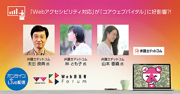 サイトのデザインリニューアルを行った弁護士ドットコム。その施策の中でアクセシビリティ向上に取り組み、現状把握、ユーザーテスト、社内合意などを経て、結果としてブランドカラーをリニューアルするに至りました。その経緯と、リニューアル結果の効果測定、SEOの新指標であるCore Web Vitals(LCP/FID/CLS)への影響についてお話しします。