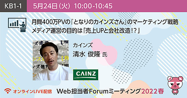 Web担当者Forumでは、日本のWeb担当者さんに「参考になる」「役に立つ」情報をお届けするWeb担のセミナーイベント、「Web担当者Forum ミーティング 2022 春」を2日間にわたって開催いたします。
