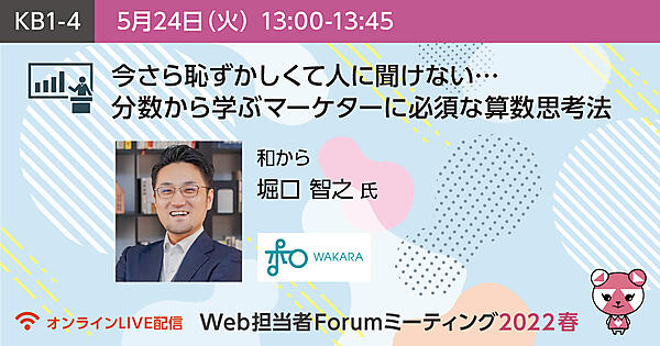 内容レベル 入門、脱初級 講演概要 日本のZ世代の価値観や消費行動から企業がどうコミュニケーションしていくかを話します。Z総研では2019年からZ世代を追いかけており、定量、定性データを元に日々変わるZ世代を観測しております。最新のZ世代のインサイト解説をしつつ、Z世代コミュニケーション事例やクリエイティブに関してもお話します。 参加対象者 マーケティング職だけでなく商品開発の人も聞いて損はない気がします 受講するメリット Z世代がわかった気になる45分にしたいと思います こんなニーズや悩みに答えられる内容です Z世代と他の世代って結局何が違うの?って人向けです 続きを読む | KB1-4 特別講演 今さら恥ずかしくて人に聞けない…分数から学ぶマーケターに必須な算数思考法
