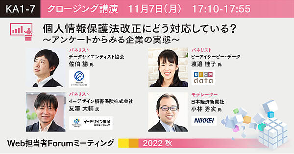 2022年4月に行われた、個人情報保護法改正を受けて、多くの企業がその対応に当たられたことだと思います。本セッションでは、デジタルマーケティング研究機構(DMI)で行われた企業への調査結果をもとに、各社がどのように対応を行ったのか、これからのデータとの向き合い方はどのようにしていけばよいのか、をインターネット広告業界の有識者を交えて、パネルディスカッション形式で話していきます。