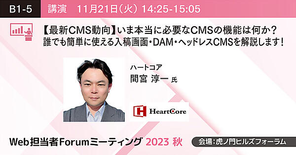 日本のWeb担当者さんに「参考になる」「役に立つ」情報をお届けするセミナーイベント「Web担当者Forum ミーティング2023 秋」を11月21日(火)~22日(水)の2日間にわたり4年ぶりに虎ノ門ヒルズフォーラムで開催します!
