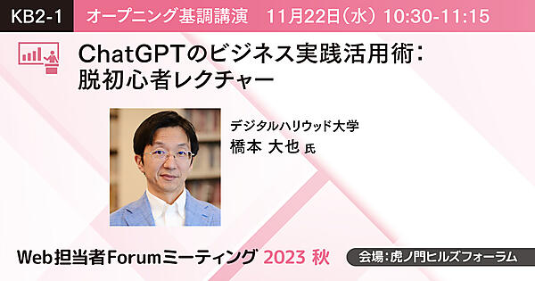 日本のWeb担当者さんに「参考になる」「役に立つ」情報をお届けするセミナーイベント「Web担当者Forum ミーティング2023 秋」を11月21日(火)~22日(水)の2日間にわたり4年ぶりに虎ノ門ヒルズフォーラムで開催します!