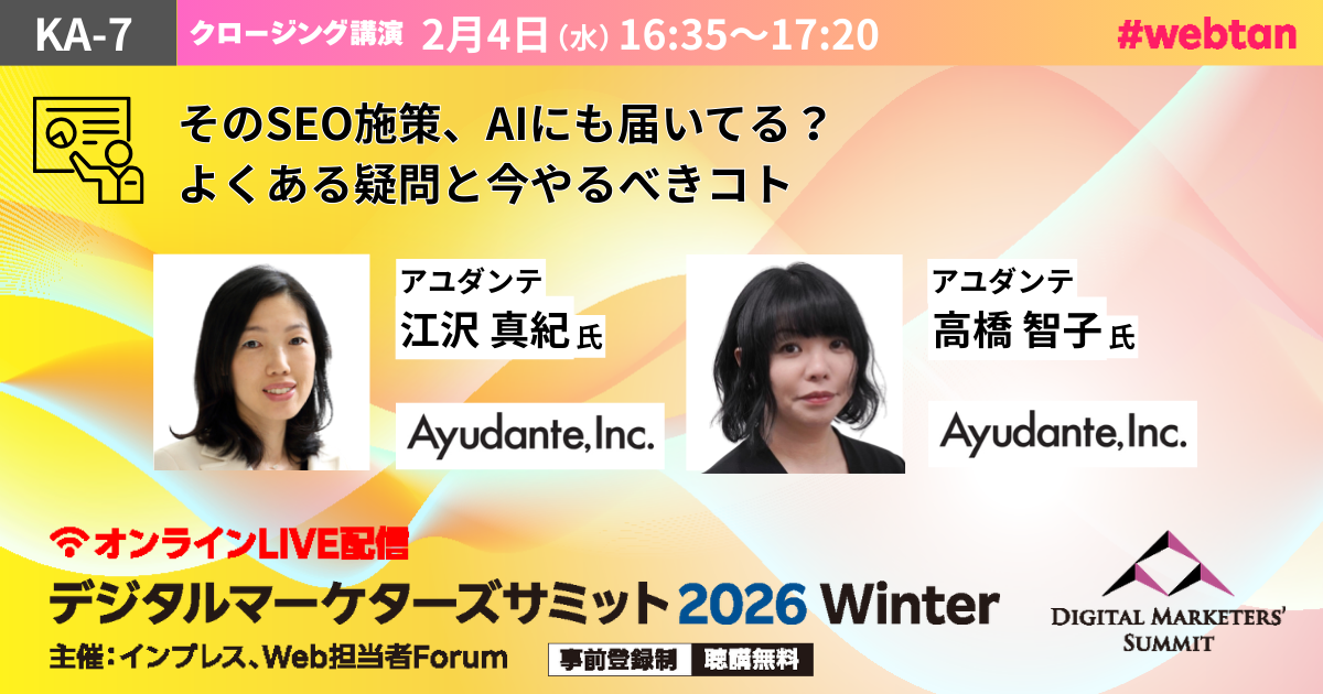 | イベント名 | デジタルマーケターズサミット 2026 Winter |