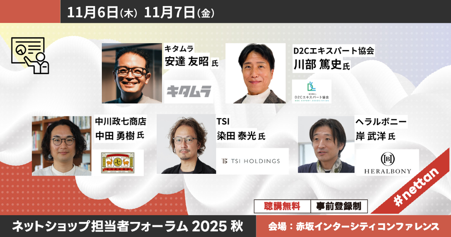 イベント・セミナーWeb担読者も必見! 「ネットショップ担当者フォーラム 2025 秋」の講演を紹介!【11/6-11/7リアル開催】 【11/6木・11/7金】ネットショップ担当者フォーラム主催「ネットショップ担当者フォーラム 2025 秋」の中から、Web担編集部おすすめの講演を紹介!