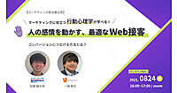 本イベントでは、購入・お申込みなど、お客様に行動してもらうために知っておきたい「心」を動かす方法をご紹介いたします。行動心理学視点からWeb接客について学んでみませんか?CV向上につながるチャットボットの使い方もお話しする予定です。ぜひお気軽にご参加ください。