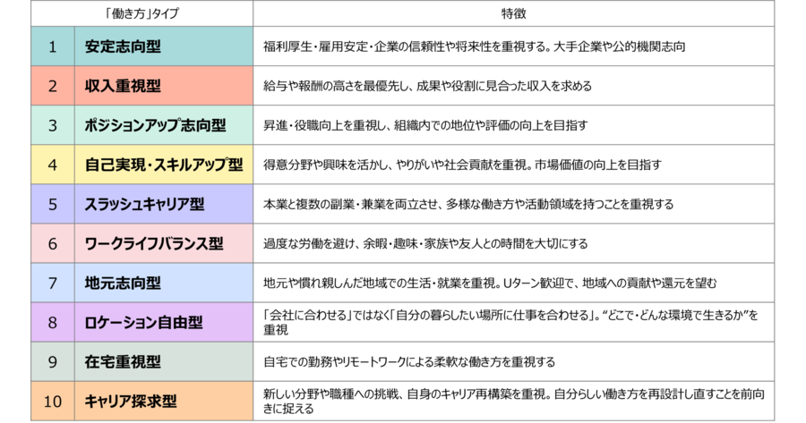 10タイプの「理想の働き方」あなたは何型? 各タイプのランキング&自己診断シートを紹介【JACリクルートメント調べ】
