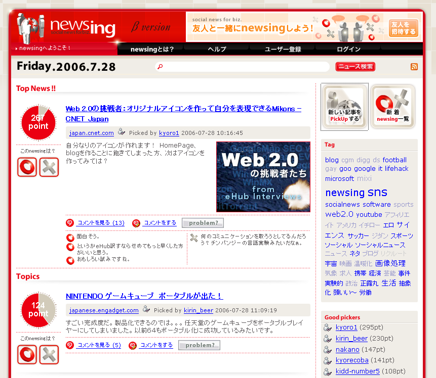 米国では、New York Timesよりも多くの訪問者数を集めていると言われるほどの人気を持つDigg.com(http://digg.com/)を筆頭に、ソーシャルニュースサイト(ユーザー参加型のニュースサイト)が勢いを増しているが、日本にもついにソーシャルニュースサイトが登場した。