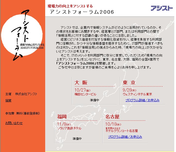 「アシストフォーラム2006 ~現場力の向上をアシストする~」開催概要