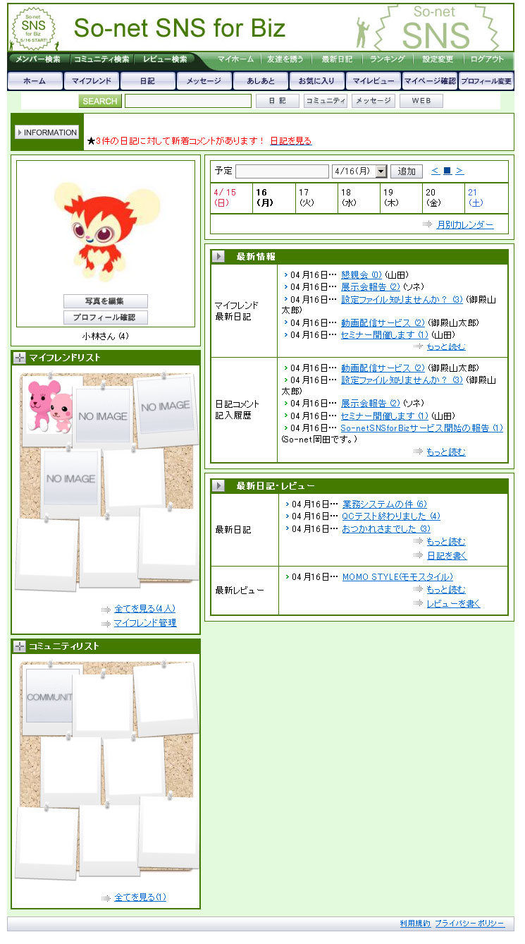 ソネットエンタテインメント (So-net)は4月18日、法人向けSNSサービス「So-net SNS for Biz」の提供を5月16日に開始すると発表した。