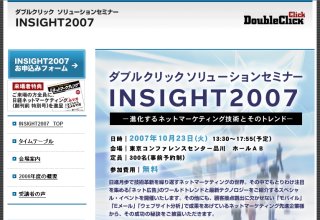 ダブルクリックは、同社が毎年開催しているネットマーケティングに関するソリューションセミナーを、今年も「INSIGHT2007~進化するネットマーケティング技術とそのトレンド~」として開催することを発表した。