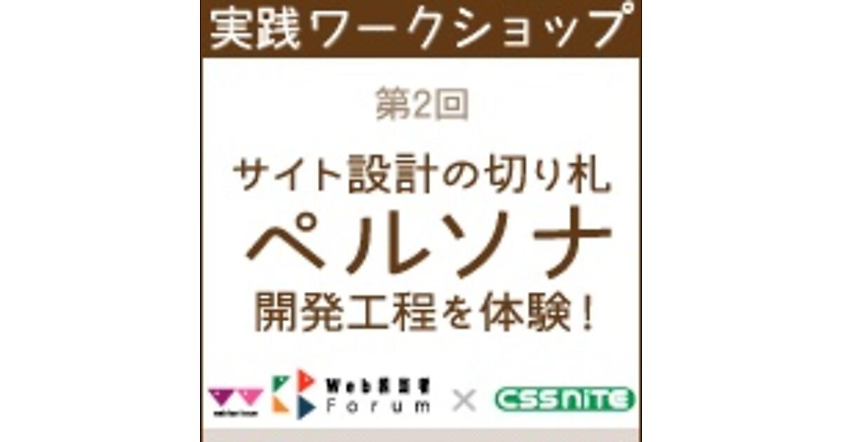 Web制作者をターゲットとするCSS Nite、企業内のWeb担当者をターゲットとするWeb担当者Forumのコラボ企画の第2弾、「実践ワークショップ」の第2回が5月19日に開催される。第2回のテーマは『サイト設計の切り札「ペルソナ」開発工程を体験!』