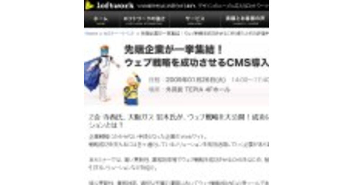 Webサイト制作のロフトワークは、CMS導入企業とともに、CMS導入の過程や活用の成果を解説するセミナー「先端企業が一挙集結!ウェブ戦略を成功させるCMS導入とその評価手法」を、2010年1月26日に開催する。